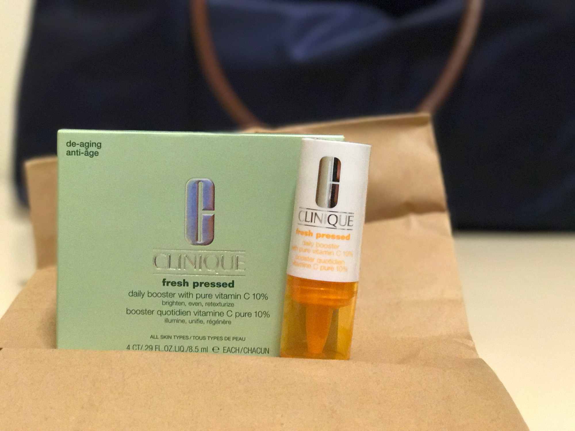 Bought this Clinique Fresh Pressed under some of my friends’ recommendation. It says it’s a “daily booster with pure Vitamin C 10%” to “brighten, even, retexturize”.